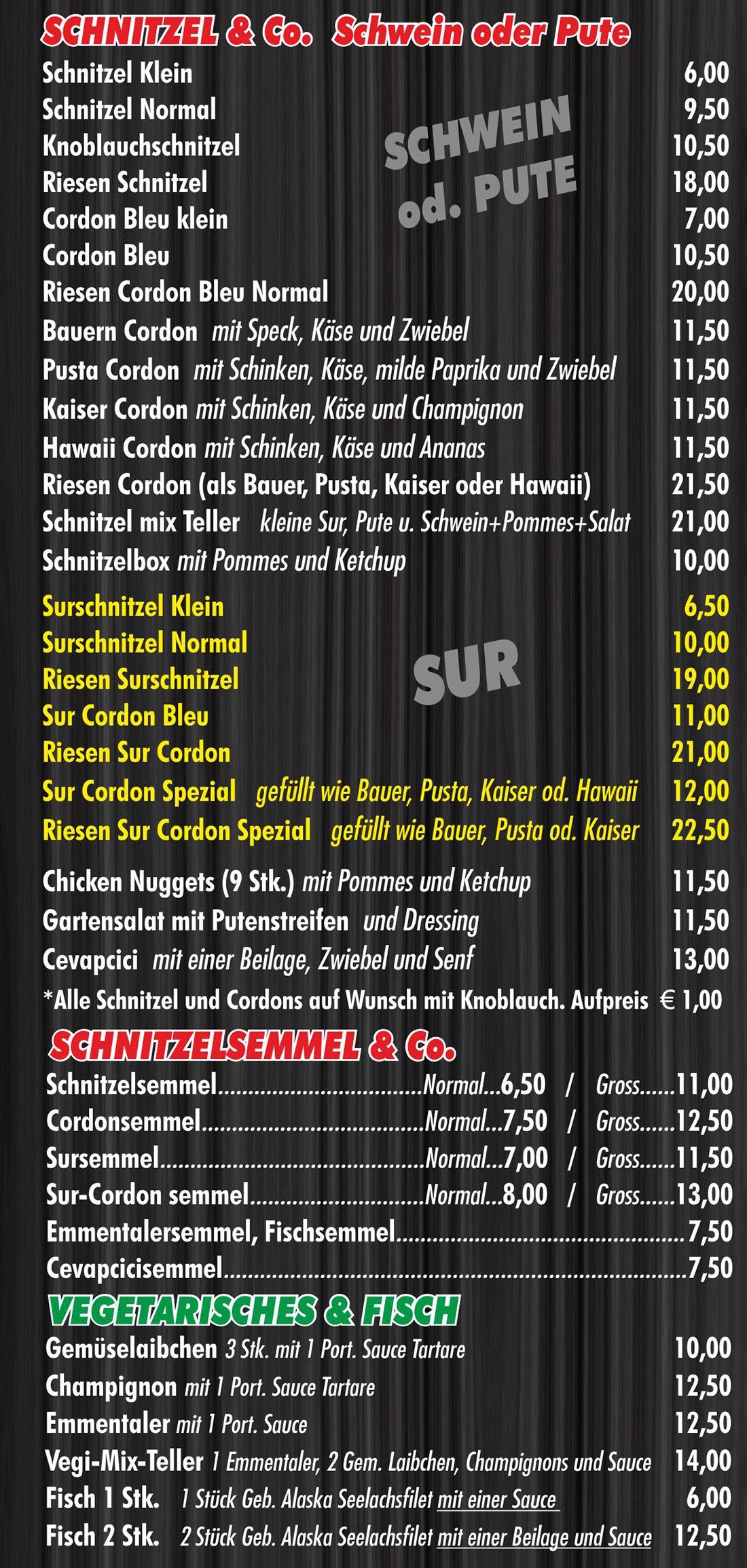 Alle Informationen zu Allergenen erhalten Sie im Aushang in der Standort oder können Sie bei Ihrer Bestellung erfragen.